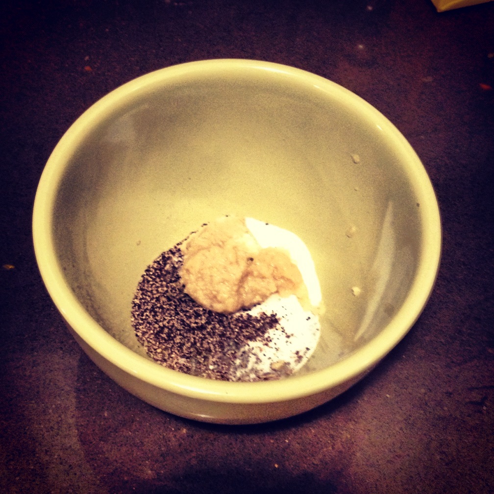 First sift the first four dry ingredients together (I don’t have a sifter, I just fluff it around a bit with a fork)