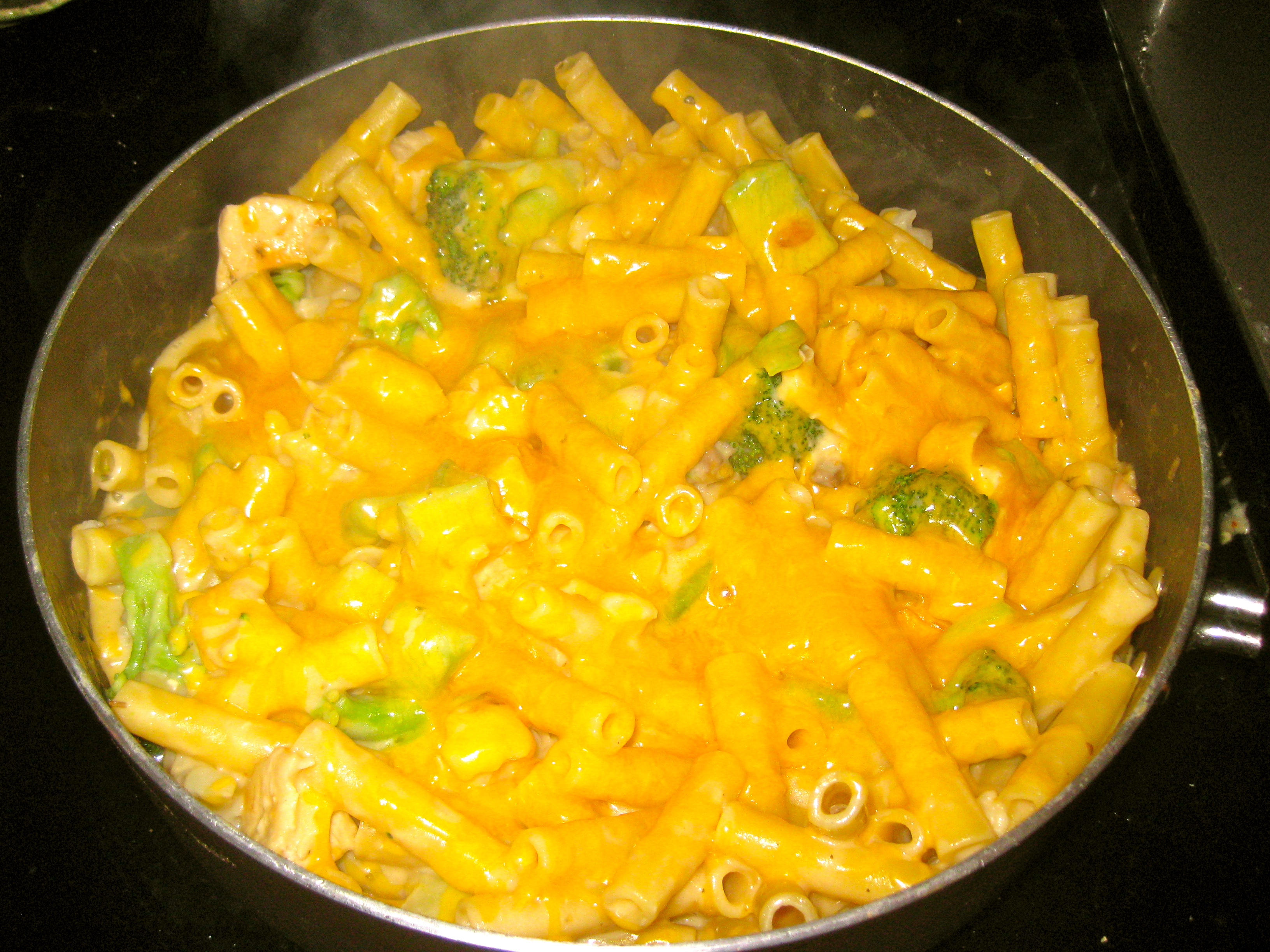3. While the pasta is boiling mix the chicken, mozz, buffalo, ricotta, and dressing in a big bowl. When the pasta is done and drained add this to the mix.
