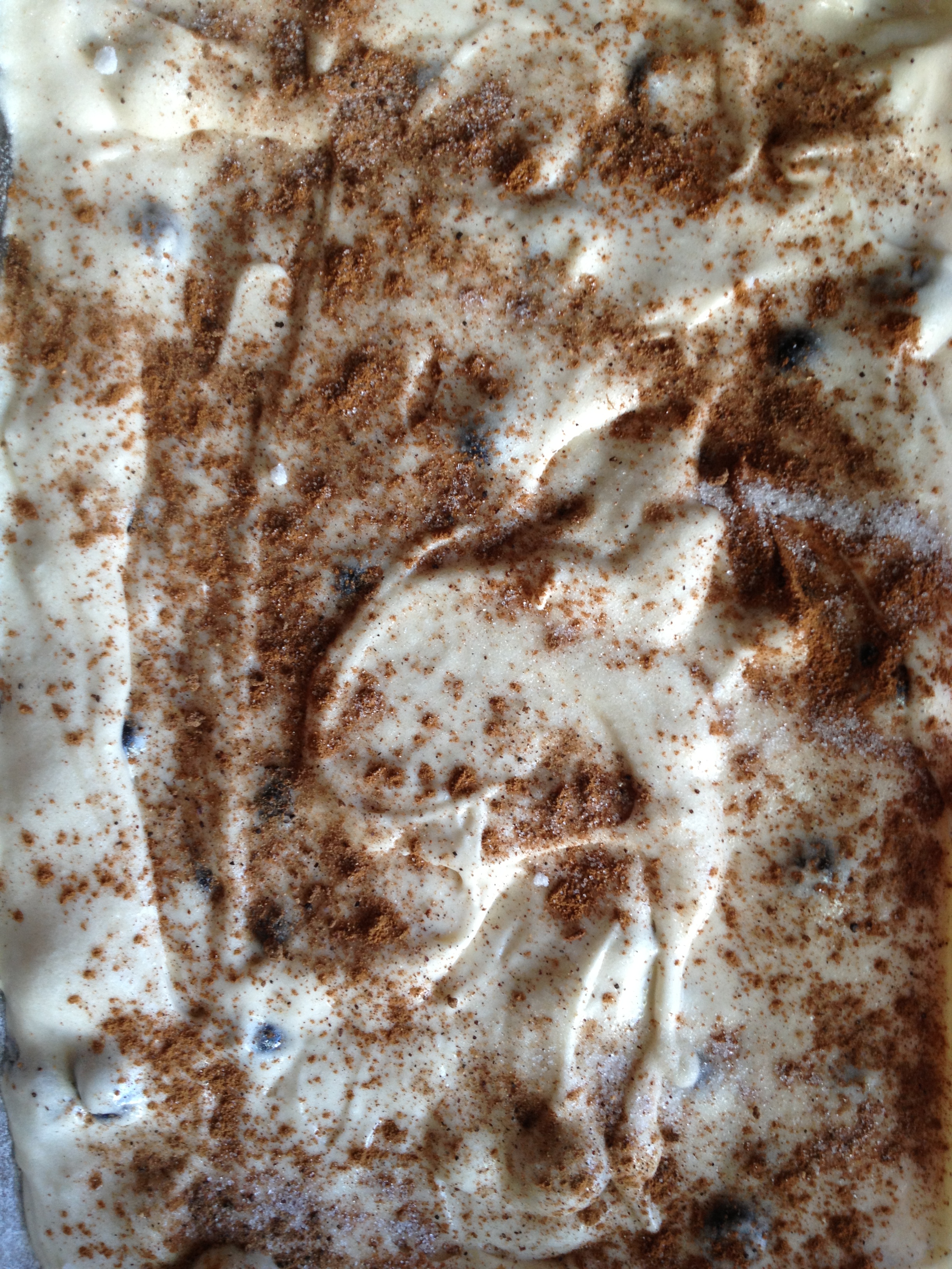 4. Once everything is all mixed up, spread in a glass baking pan and top with the breadcrumbs and parm (I pre-mixed the crumbs and cheese).